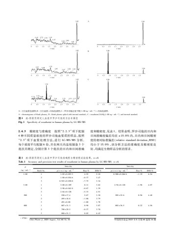 %uff21%uff0d%u7a7a%u767d%u8840%u6d46%u8272%u8c31%u56fe%uff1b%uff22%uff0d%u7a7a%u767d%u8840%u6d46 %uff0b%u5185%u6807%u8272%u8c31%u56fe%uff1b%uff23%uff0d%u7f57%u6c99%u53f8%u4ed6%u5b9a%u91cf%u4e0b%u9650%uff08%uff11%ue010%uff10%uff10%uff4e%uff47%u00b7%uff4d%uff2c%uff0d%uff11%uff09%uff0b%u5185%u6807%u8272%u8c31%u56fe%u3002%uff21%uff0d%uff43%uff48%uff52%uff4f%uff4d%uff41%uff54%uff4f%uff47%uff52%uff41%uff4d%uff53%uff4f%uff46%uff42%uff4c%uff41%uff4e%uff4b%uff50%uff4c%uff41%uff53%uff4d%uff41%uff1b%uff22%uff0d%uff42%uff4c%uff41%uff4e%uff4b%uff50%uff4c%uff41%uff53%uff4d%uff41%uff53%uff50%uff49%uff4b%uff45%uff44%uff57%uff49%uff54%uff48%uff49%uff4e%uff54%uff45%uff52%uff4e%uff41%uff4c%uff53%uff54%uff41%uff4e%uff44%uff41%uff52%uff44%uff1b%uff23%uff0d%uff52%uff4f%uff58%uff41%uff44%uff55%uff53%uff54%uff41%uff54%uff08%uff2c%uff2c%uff2f%uff31%uff0c%uff11%ue010%uff10%uff10%uff4e%uff47%u00b7%uff4d%uff2c%uff0d%uff11%uff09%uff41%uff4e%uff44%uff49%uff4e%uff54%uff45%uff52%uff4e%uff41%uff4c%uff53%uff54%uff41%uff4e%uff44%uff41%uff52%uff44%uff0e%u56fe %uff11 %u6db2%ue011%u8d28%u8054%u7528%u6d4b%u5b9a%u4eba%u8840%u6d46%u4e2d%u7f57%u6c99%u53f8%u4ed6%u7684%u65b9%u6cd5%u4e13%u5c5e%u6027%uff26%uff49%uff47%ue010%uff11 %uff33%uff50%uff45%uff43%uff49%uff46%uff49%uff43%uff49%uff54%uff59%uff4f%uff46%uff52%uff4f%uff58%uff41%uff44%uff55%uff53%uff54%uff41%uff54%uff49%uff4e%uff48%uff55%uff4d%uff41%uff4e%uff50%uff4c%uff41%uff53%uff4d%uff41%uff42%uff59%uff2c%uff23%ue011%uff2d%uff33%uff0f%uff2d%uff33%uff12%ue010%uff14%ue010%uff13 %u7cbe%u5bc6%u5ea6%u4e0e%u51c6%u786e%u5ea6 %u6309%u7167%u201c%uff12%ue010%uff12%ue010%uff13%u201d%u9879%u4e0b%u914d%u5236%uff14%u79cd%u4e0d%u540c%u8d28%u91cf%u6d53%u5ea6%u7684%u7f57%u6c99%u53f8%u4ed6%u8840%u6d46%u8d28%u63a7%u6837%u54c1%uff0c%u6309%u7167%u201c%uff12%ue010%uff13%u201d%u9879%u4e0b%u8840%u6d46%u5904%u7406%u65b9%u6cd5%uff0c%u8fdb%u884c %uff2c%uff23%ue011%uff2d%uff33%uff0f%uff2d%uff33%u5206%u6790%u3002%u6bcf%u4e2a%u6d53%u5ea6%u5e73%u884c%u914d%u5236 %uff16%u4efd%uff0c%u5e76%u5728%u4e24%u5929%u5185%u8fde%u7eed%u5236%u5907 %uff13%u4e2a%u6279%u6b21%u5e76%u6d4b%u5b9a%uff0c%u5206%u522b%u8ba1%u7b97 %uff13%u4e2a%u6279%u6b21%u7684%u65e5%u5185%u548c%u65e5%u95f4%u51c6%u786e%u5ea6%u548c%u7cbe%u5bc6%u5ea6%uff0c%u89c1%u8868 %uff11%u3002%u7ed3%u679c%u8868%u660e%uff0c%u7f57%u6c99%u53f8%u4ed6%u7684%u65e5%u5185%u548c%u65e5%u95f4%u51c6%u786e%u5ea6%u504f%u5dee%u5747%u5728 %u00b1%uff11%uff15%ue010%uff10%uff05%u5185%uff0c%u65e5%u5185%u548c%u65e5%u95f4%u7cbe%u5bc6%u5ea6%u7684%u76f8%u5bf9%u6807%u51c6%u504f%u5dee%uff08%uff52%uff45%uff4c%uff41%uff54%uff49%uff56%uff45%uff53%uff54%uff41%uff4e%uff44%uff41%uff52%uff44%uff44%uff45%uff56%uff49%uff41%uff54%uff49%uff4f%uff4e%uff0c%uff32%uff33%uff24%uff09%u5747%u5c0f%u4e8e %uff11%uff15%ue010%uff10%uff05%uff0c%u8be5%u5206%u6790%u65b9%u6cd5%u7684%u51c6%u786e%u5ea6%u53ca%u7cbe%u5bc6%u5ea6%u826f%u597d%uff0c%u5747%u6ee1%u8db3%u751f%u7269%u6837%u54c1%u5206%u6790%u7684%u8981%u6c42%u3002%u8868 %uff11 %u6db2%ue011%u8d28%u8054%u7528%u6d4b%u5b9a%u4eba%u8840%u6d46%u4e2d%u7f57%u6c99%u53f8%u4ed6%u51c6%u786e%u5ea6%u4e0e%u7cbe%u5bc6%u5ea6%u8bd5%u9a8c%u7ed3%u679c%u3002%uff4e%uff1d%uff16%uff34%uff41%uff42%ue010%uff11 %uff21%uff43%uff43%uff55%uff52%uff41%uff43%uff59%uff41%uff4e%uff44%uff50%uff52%uff45%uff43%uff49%uff53%uff49%uff4f%uff4e%uff54%uff45%uff53%uff54%uff52%uff45%uff53%uff55%uff4c%uff54%uff53%uff4f%uff46%uff52%uff4f%uff58%uff41%uff44%uff55%uff53%uff54%uff41%uff54%uff49%uff4e%uff48%uff55%uff4d%uff41%uff4e%uff50%uff4c%uff41%uff53%uff4d%uff41%uff42%uff59%uff2c%uff23%ue011%uff2d%uff33%uff0f%uff2d%uff33%uff0e%uff4e%uff1d%uff16%u03c1%uff0f%uff4e%uff47%u00b7%uff4d%uff2c%uff0d%uff11%uff29%uff4e%uff54%uff52%uff41%ue011%uff44%uff41%uff59 %uff29%uff4e%uff54%uff45%uff52%ue011%uff44%uff41%uff59%uff22%uff41%uff54%uff43%uff48%uff2e%uff4f%uff0e %u03c1%uff08%uff58%u73cb%u00b1%uff53%uff09%uff0f%uff4e%uff47%u00b7%uff4d%uff2c%uff0d%uff11 %uff22%uff49%uff41%uff53%uff0f%uff05 %uff32%uff33%uff24%uff0f%uff05 %u03c1%uff08%uff58%u73cb%u00b1%uff53%uff09%uff0f%uff4e%uff47%u00b7%uff4d%uff2c%uff0d%uff11 %uff22%uff49%uff41%uff53%uff0f%uff05 %uff32%uff33%uff24%uff0f%uff05%uff11%ue010%uff10%uff10 %uff11 %uff11%ue010%uff10%uff15%u00b1%uff10%ue010%uff10%uff15%uff13%uff13 %uff14%ue010%uff15%uff15 %uff15%ue010%uff11%uff10 %uff10%ue010%uff19%uff18%uff18%u00b1%uff10%ue010%uff10%uff16%uff14%uff16 %uff0d%uff11%ue010%uff11%uff19 %uff16%ue010%uff15%uff14%uff12 %uff11%ue010%uff10%uff10%u00b1%uff10%ue010%uff10%uff13%uff14%uff16 %uff0d%uff10%ue010%uff13%uff17 %uff13%ue010%uff14%uff17%uff13 %uff10%ue010%uff19%uff12%uff13%u00b1%uff10%ue010%uff10%uff13%uff10%uff18 %uff0d%uff17%ue010%uff17%uff15 %uff13%ue010%uff13%uff14%uff13%ue010%uff10%uff10 %uff11 %uff13%ue010%uff10%uff10%u00b1%uff10%ue010%uff11%uff10%uff19 %uff10%ue010%uff11%uff11 %uff13%ue010%uff16%uff12 %uff12%ue010%uff19%uff14%u00b1%uff10%ue010%uff11%uff12%uff10 %uff0d%uff11%ue010%uff19%uff16 %uff14%ue010%uff10%uff17%uff12 %uff12%ue010%uff19%uff18%u00b1%uff10%ue010%uff10%uff14%uff11%uff10 %uff0d%uff10%ue010%uff16%uff17 %uff11%ue010%uff13%uff19%uff13 %uff12%ue010%uff18%uff14%u00b1%uff10%ue010%uff11%uff12%uff18 %uff0d%uff15%ue010%uff13%uff13 %uff14%ue010%uff15%uff11%uff15%uff10%uff10 %uff11 %uff15%uff12%uff18%u00b1%uff11%uff17%ue010%uff14 %uff15%ue010%uff16%uff17 %uff13%ue010%uff13%uff10 %uff15%uff10%uff15%u00b1%uff12%uff12%ue010%uff16 %uff10%ue010%uff19%uff16 %uff14%ue010%uff14%uff18%uff12 %uff14%uff19%uff15%u00b1%uff11%uff18%ue010%uff18 %uff0d%uff11%ue010%uff10%uff10 %uff13%ue010%uff17%uff19%uff13 %uff14%uff19%uff11%u00b1%uff18%ue010%uff18%uff10 %uff0d%uff11%ue010%uff18%uff10 %uff11%ue010%uff17%uff18%uff18%uff10%uff10 %uff11 %uff18%uff10%uff17%u00b1%uff13%uff11%ue010%uff13 %uff10%ue010%uff19%uff10 %uff13%ue010%uff18%uff17 %uff18%uff10%uff12%u00b1%uff13%uff16%ue010%uff15 %uff10%ue010%uff12%uff12 %uff14%ue010%uff15%uff16%uff12 %uff17%uff19%uff18%u00b1%uff12%uff19%ue010%uff15 %uff0d%uff10%ue010%uff12%uff17 %uff13%ue010%uff17%uff10%uff13 %uff18%uff10%uff10%u00b1%uff15%uff11%ue010%uff1